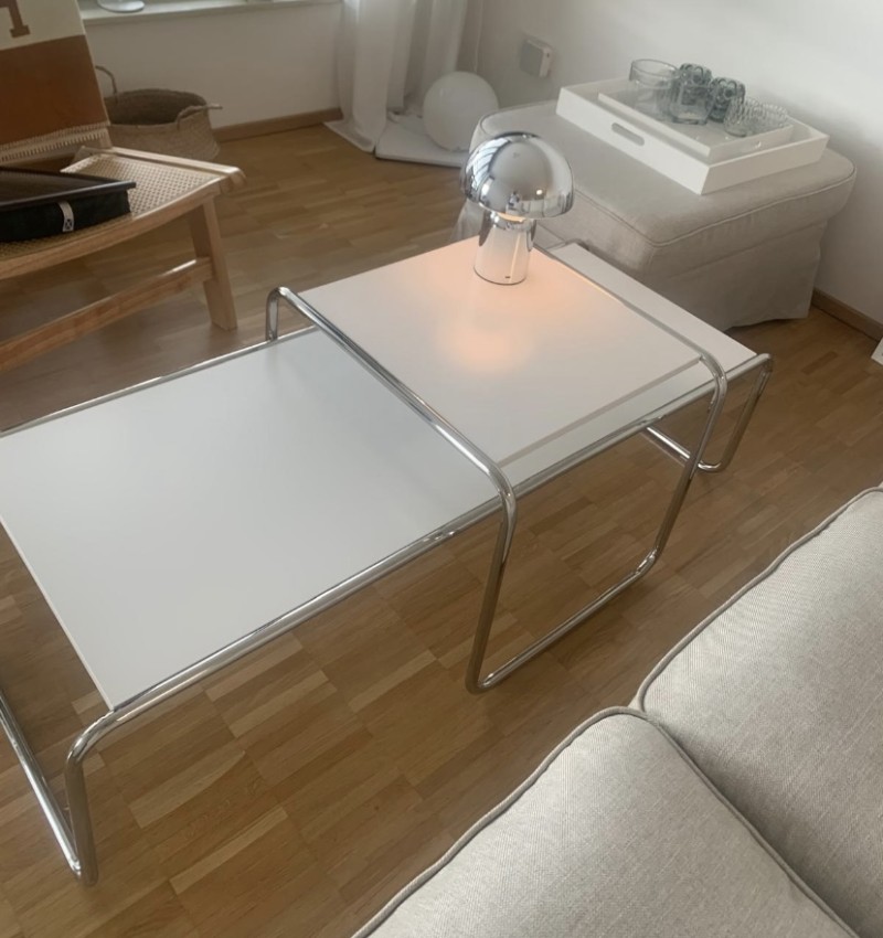Tyto stoly se skvěle hodí do moderních obývacích pokojů, kreativních kanceláří nebo minimalistických prostor, hodí se k nízkým pohovkám, otevřeným prostorům a industriálním dekorům nebo na Skandinávie. Jejich lehká a univerzální konstrukce umožňuje uspořádat je dohromady nebo samostatně podle potřeb prostoru.