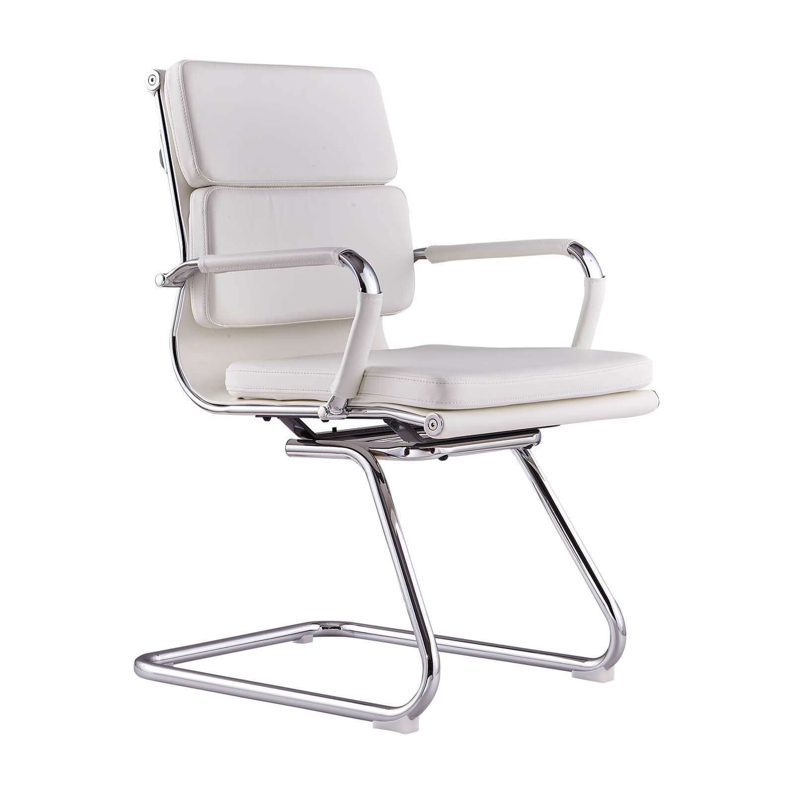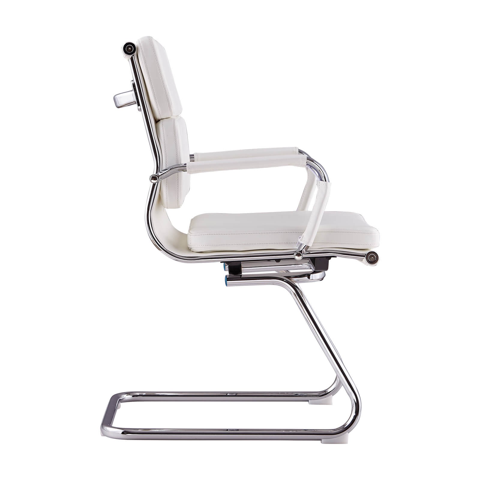 Jeho pevný chromovaný ocelový rám dodává moderní a profesionální nádech a zároveň zaručuje stabilitu a odolnost. Konstrukce bez koleček umožňuje lépe využít prostor a zachovává úhlednější a jednotnější vzhled, což je obzvláště cenné ve firemních zasedacích místnostech nebo recepcích, kde je první dojem klíčový.