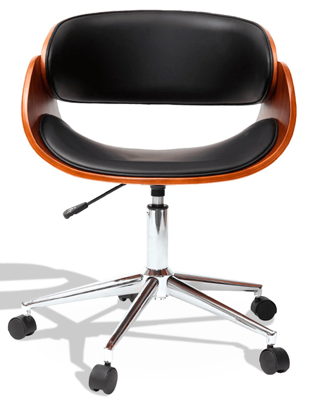 Kancelářské křeslo Burrow Office Chair z ořechového dřeva a koženkového polštáře je židle, která má kromě funkčnosti i originální a elegantní design.