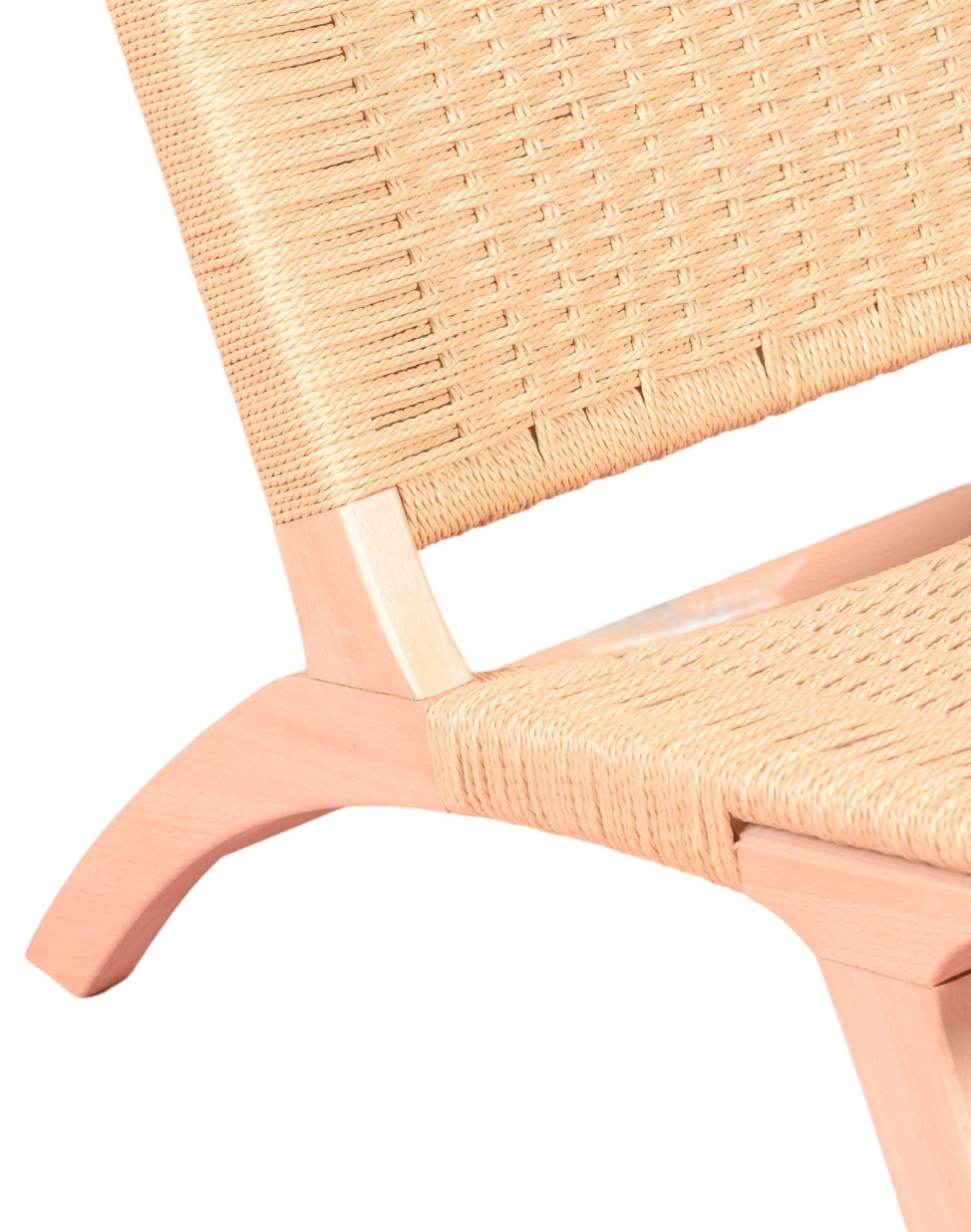 Je vyrobena z masivního bukového dřeva a přírodního lana , což mu dodává jedinečný pocit kvality a odolnosti . Bukové dřevo je známé svou odolností , která zajišťuje, že křeslo vydrží roky. Přírodní lano použité v konstrukci sedáku a opěradla je propustné a odolné a poskytuje pohodlné sezení.