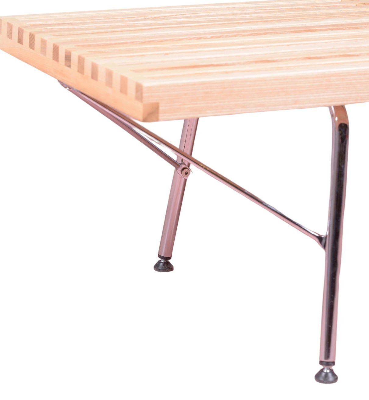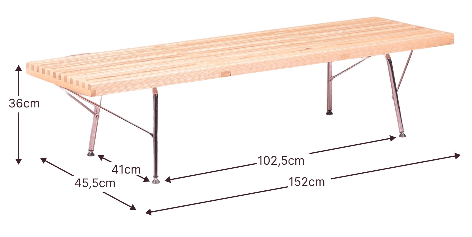 Die bei der Konstruktion der Bank Vintage Nelhouse verwendeten Materialien garantieren eine optimale Haltbarkeit und Widerstandsfähigkeit. Das Eschenholz ist langlebig und hat ein natürliches Aussehen, während die verchromten Stahlbeine ihm ein modernes und raffiniertes Aussehen verleihen.