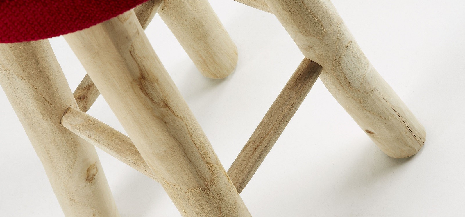 Der Designerhocker basiert auf dem Design von Bosch. Die Holzbeine sind aus Teakholz hergestellt und die Sitzfläche ist gestrickt. Der Hocker lässt sich sehr leicht mit einem feuchten Tuch reinigen.