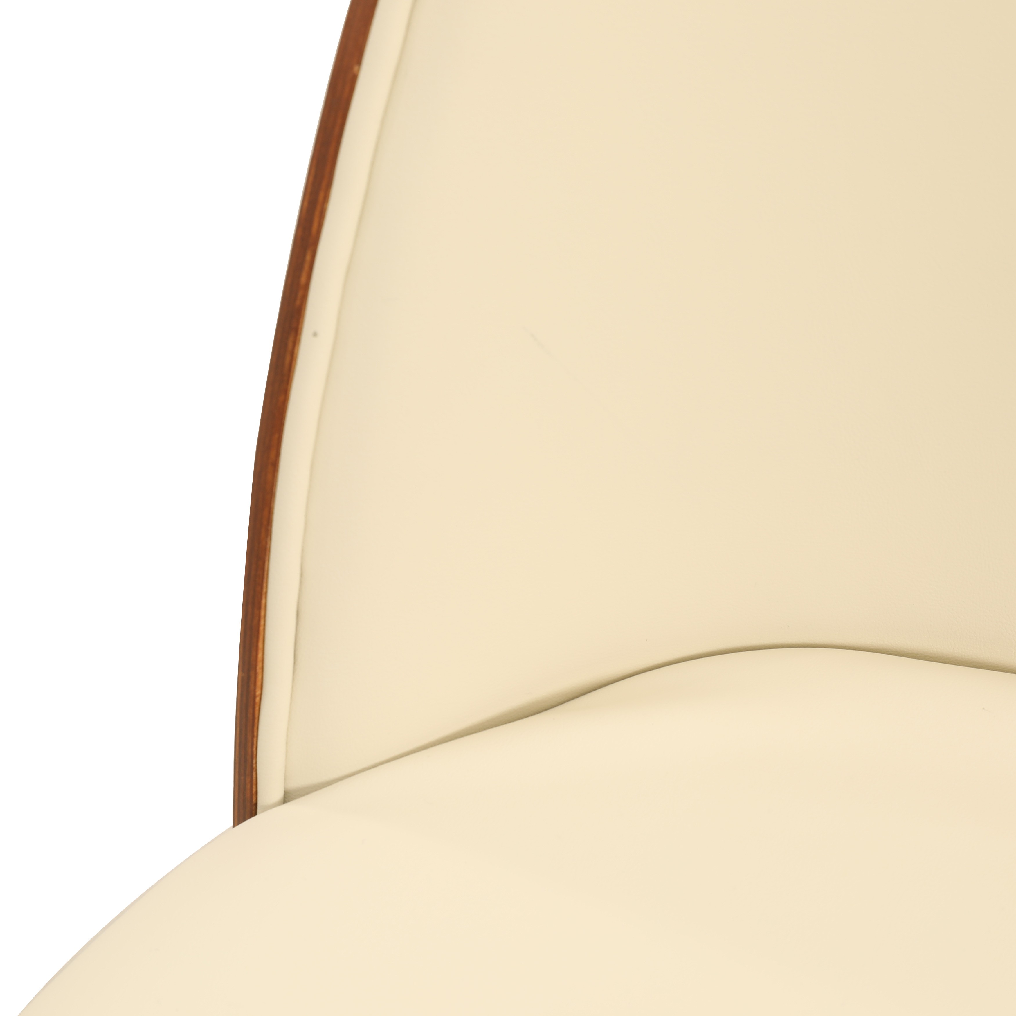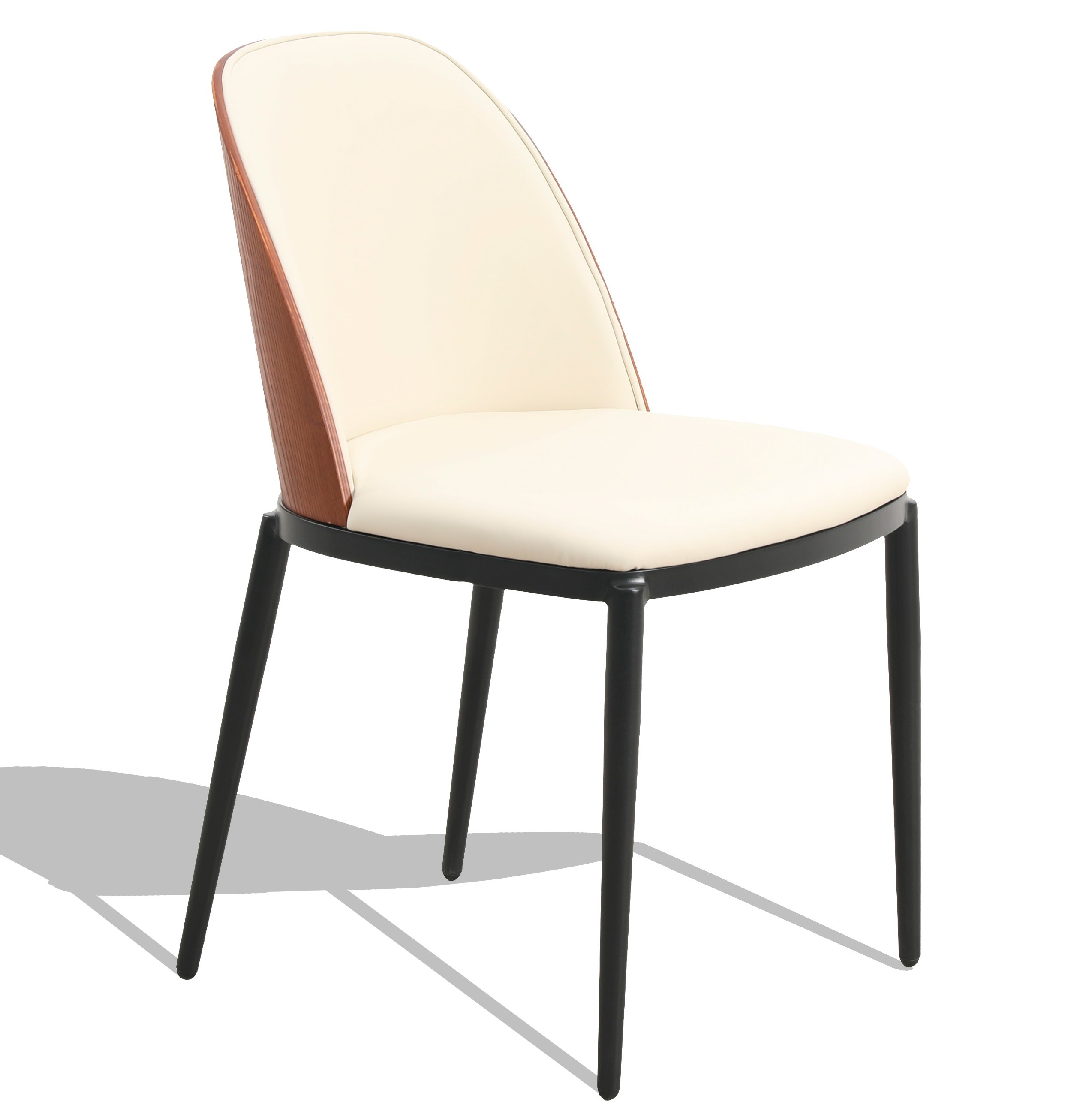 Seine hochwertigen Materialien garantieren Haltbarkeit und Stil. Die Rückenlehne aus Walnussholz sorgt für eine solide und widerstandsfähige Struktur, während der Kunstledersitz eine weiche und leicht zu reinigende Oberfläche bietet. Die schwarz lackierten Stahlbeine sorgen nicht nur für Stabilität, sondern kontrastieren auch elegant mit der Wärme des Holzes und schaffen so eine einzigartige visuelle Balance.
