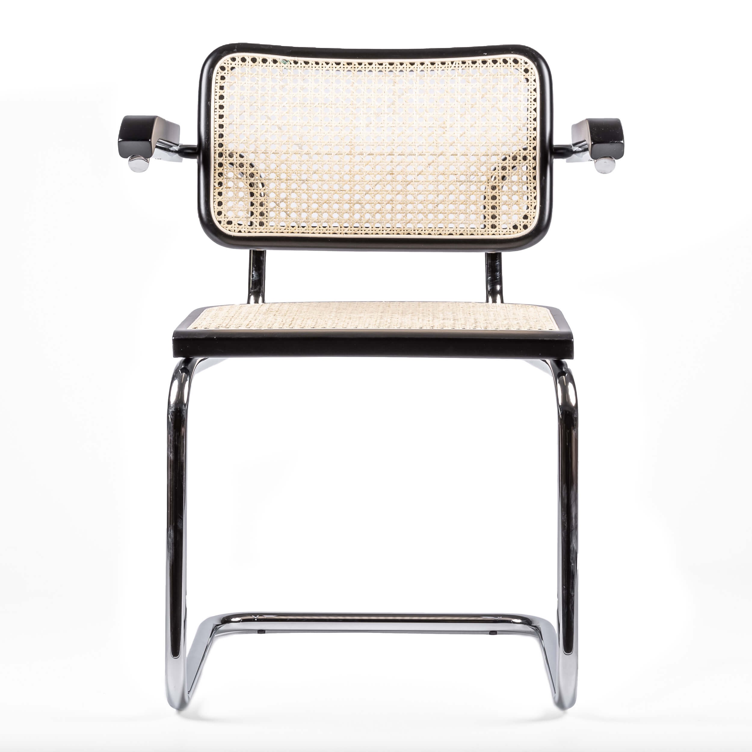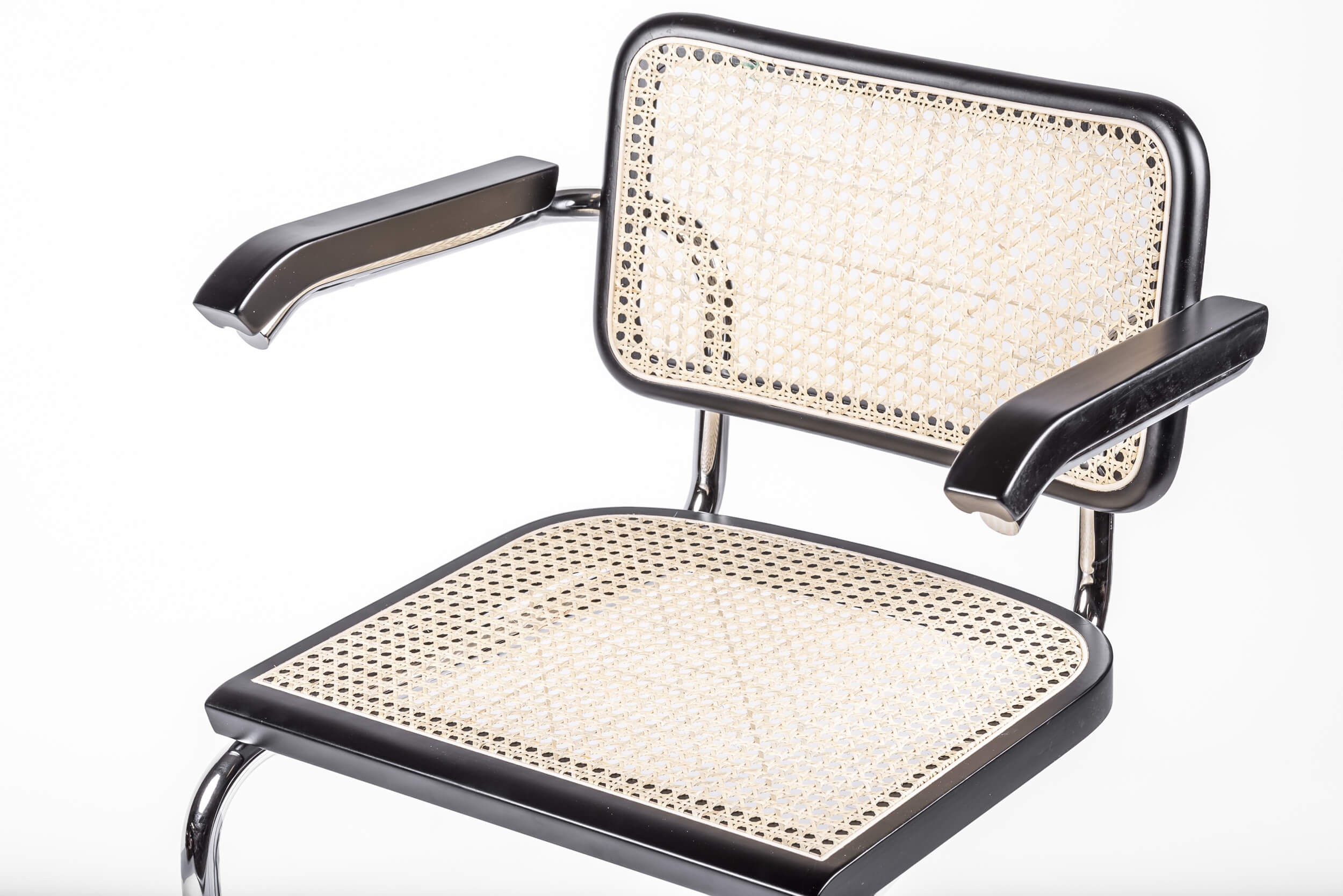Das Gestell besteht aus verchromtem Edelstahl, der ihm einen Glanz und eine Reflexion verleiht, die das Auge erfreut. Die Kanten der Sitzfläche und der Rückenlehne sind aus natürlichem Buchenholz, das von Hand geschnitzt wurde, und auch die Innenausstattung besteht aus echtem Rattan, das von Hand gesponnen und geschnitten wurde, was dieses Produkt zu einer Augenweide macht.
