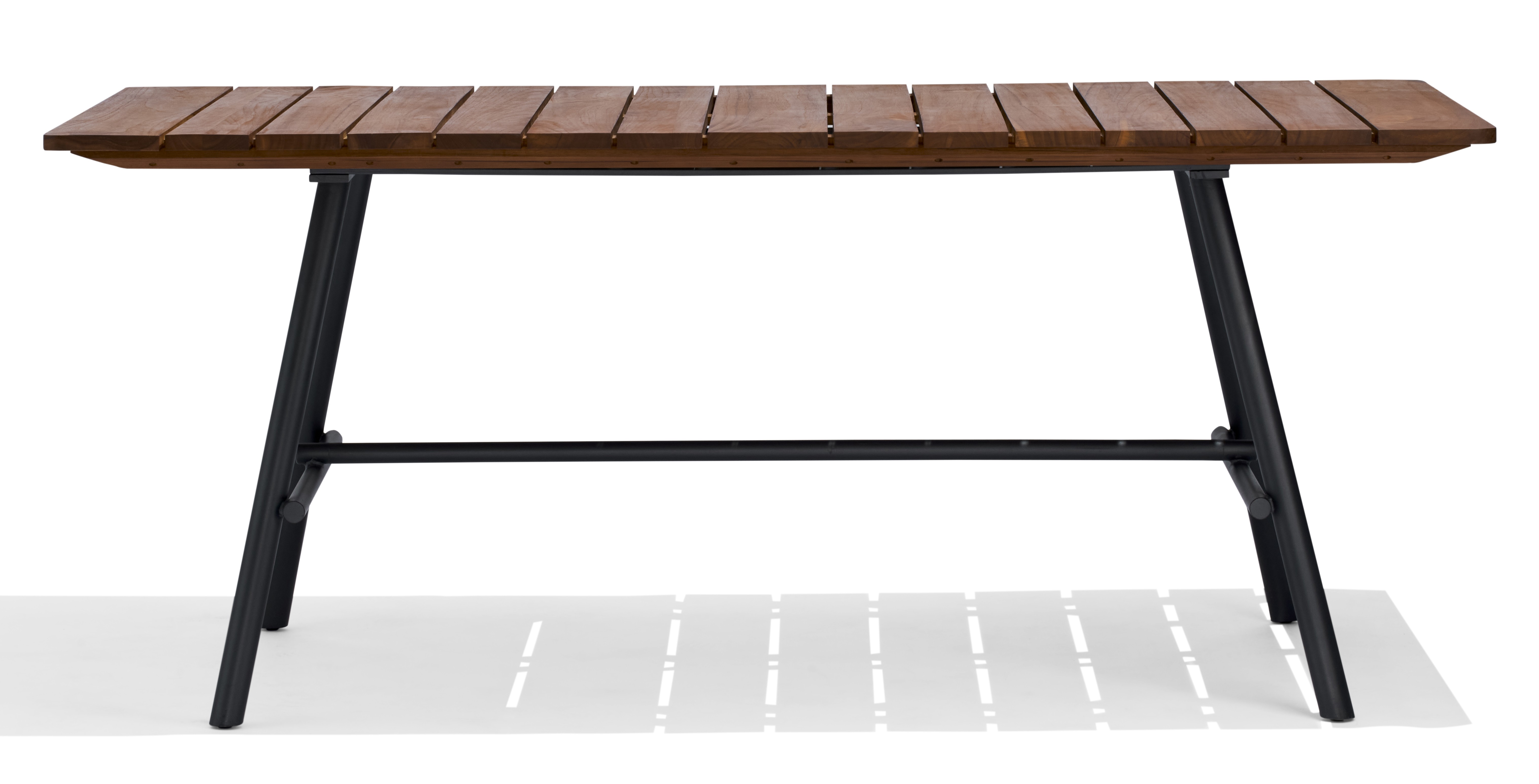Der Fare Table zeichnet sich außerdem durch ein schickes Industriedesign aus, das ihn zu einer perfekten Wahl für eine Vielzahl von Dekorationsstilen macht. Sein widerstandsfähiges mattschwarzes Stahlbein, kombiniert mit massivem Teakholz, schafft einen interessanten visuellen Kontrast und verleiht dem Tisch eine moderne Note. Macht es zu einer ausgezeichneten Wahl für Zuhause.