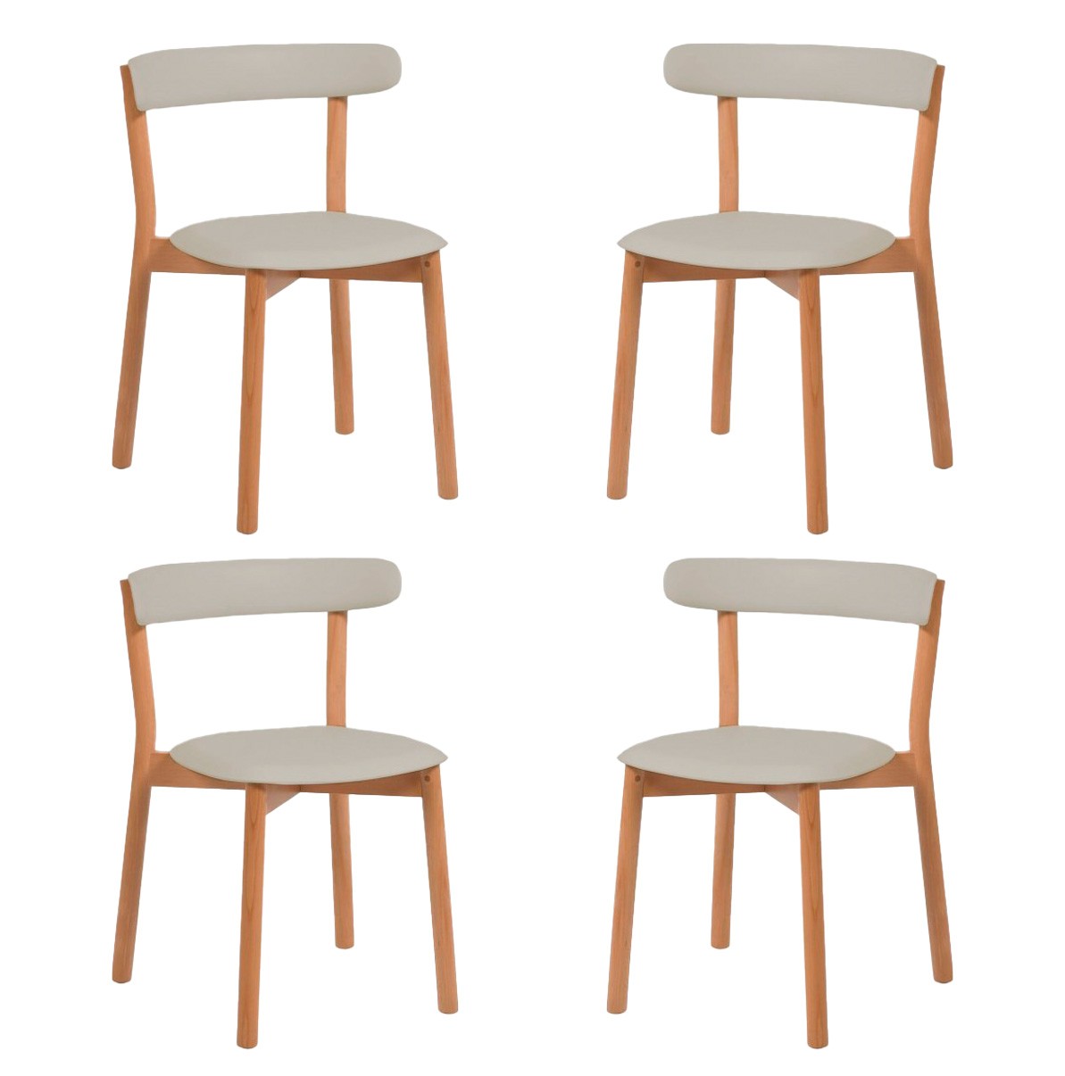 Jokaisen tuolin rakenne on kokonaanvalmistettu massiivipyökistä ja istuin ja selkänoja polypropeenimuovia.