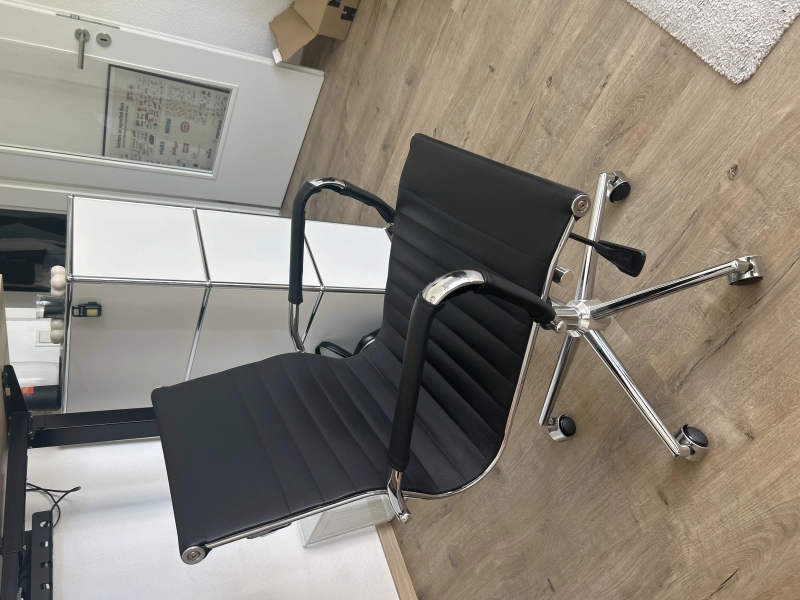 Matalalla selkänojalla varustetussa työtuolissa yhdistyvät moderni tyylikkyys ja ammatillinen mukavuus. Tekonahasta ja kromatusta teräksestä valmistettu muotoilu tarjoaa hienostuneen ja ajattoman estetiikan, joka sopii erinomaisesti toimistoon, kotitoimistoon tai kokoushuoneeseen. Säädettävän korkeuden, ergonomisten käsinojien ja pyörillä varustetun jalustan ansiosta voit nauttia mukavasta ja tuottavasta työpäivästä tyylikkäästi.