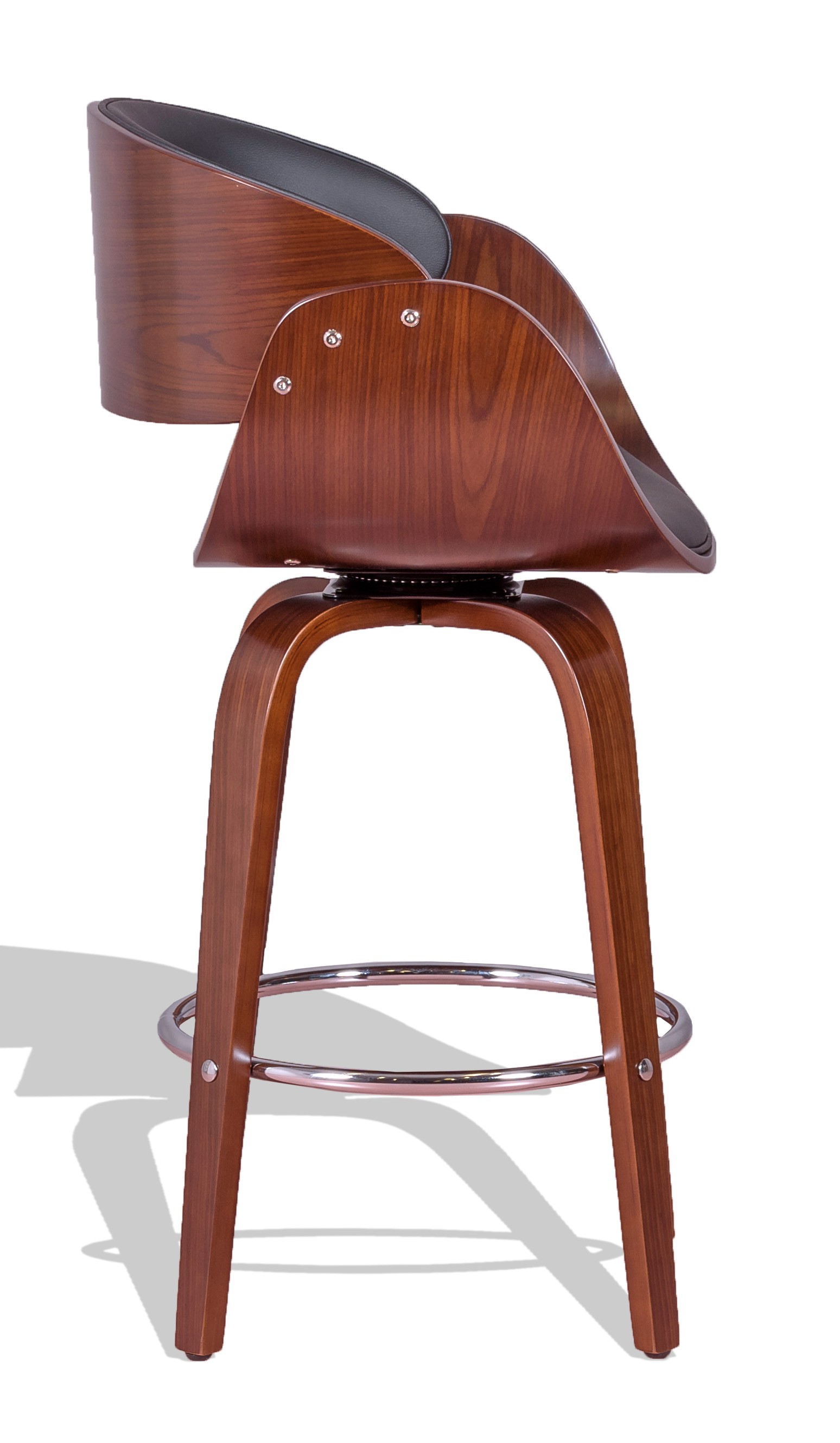 - Walnoothout voor de structuur en zwart kunstlederen kussen.
