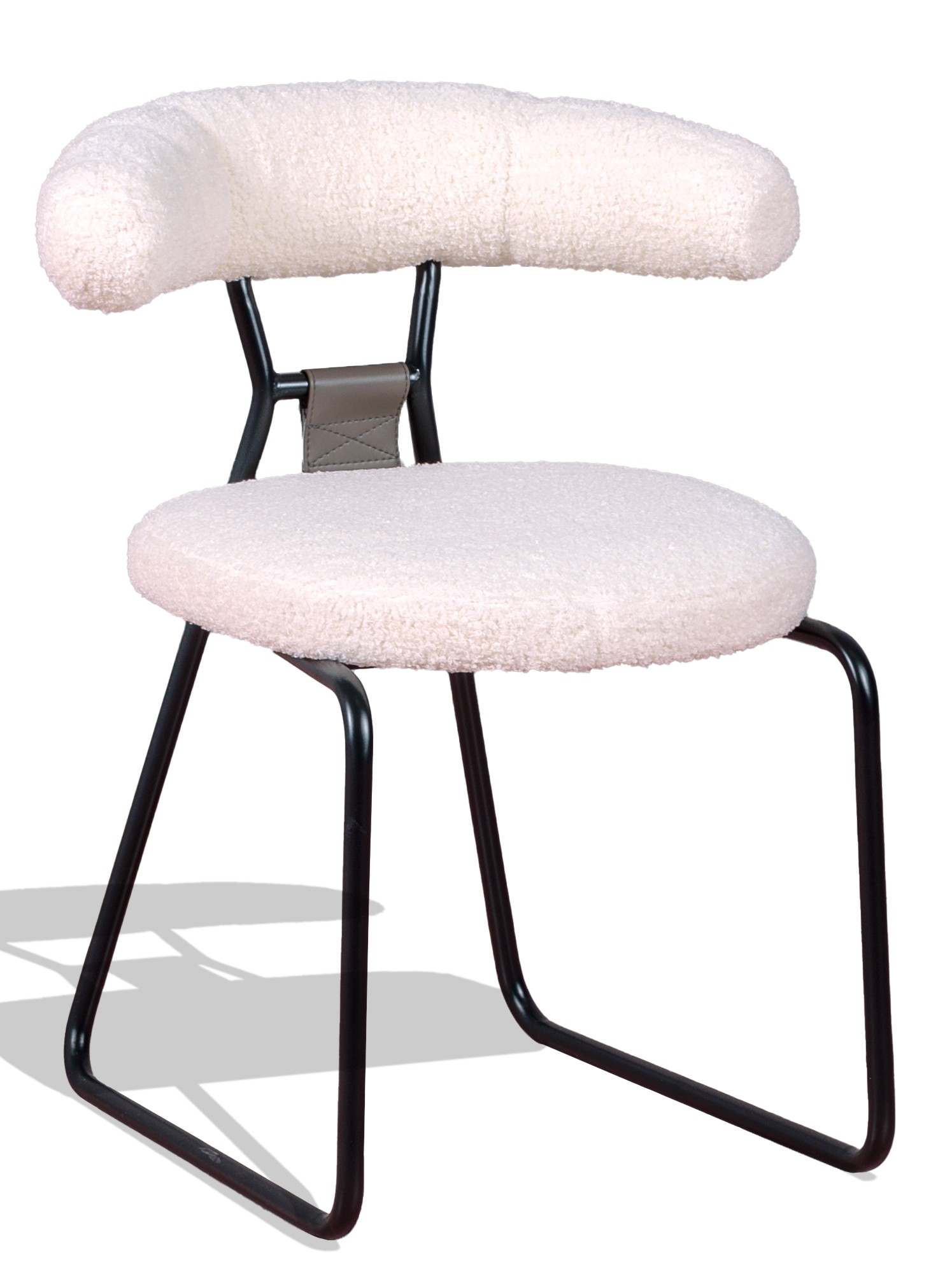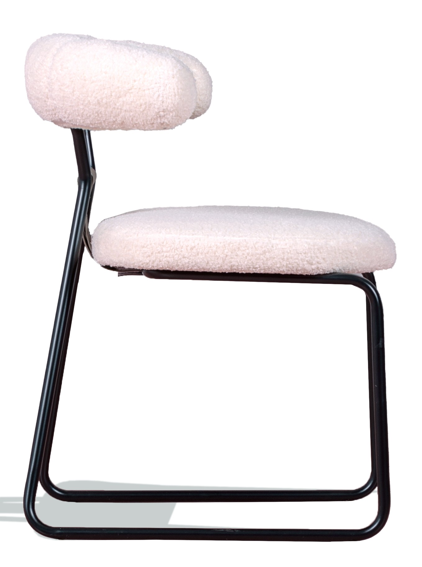 <p>De materialen van deze stoel zijn van de hoogste kwaliteit: het bouclé is <strong>zacht, vlekbestendig en gemakkelijk schoon te maken</strong>. De <strong>zwart gelakte stalen poten</strong> zorgen voor een vleugje moderniteit en stabiliteit. Het schuimkussen met hoge dichtheid zorgt voor urenlang comfort.</p>