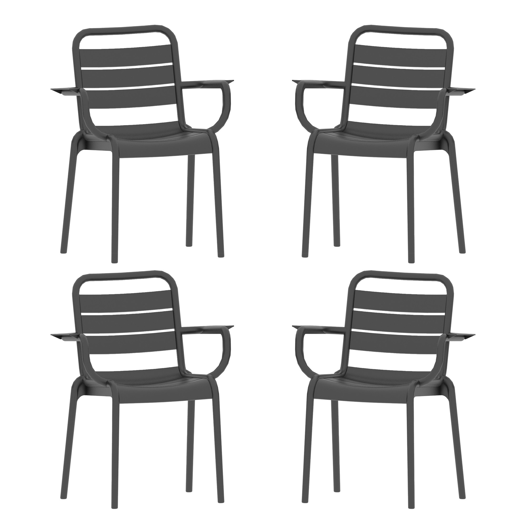 Het 4-pack van de Karen stoel is de perfecte metgezel om in alle comfort, stijl en rust van je buitenruimtes te genieten. Ontworpen om de elementen te weerstaan zonder zijn esthetiek te verliezen, is deze stoel ideaal voor tuinen, terrassen, balkons, patio's of zwembadzones en biedt functionaliteit en eigentijds design in een enkel stuk.