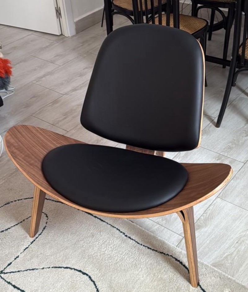 Fotel z orzecha włoskiego ze skórzanymi poduszkami Shell