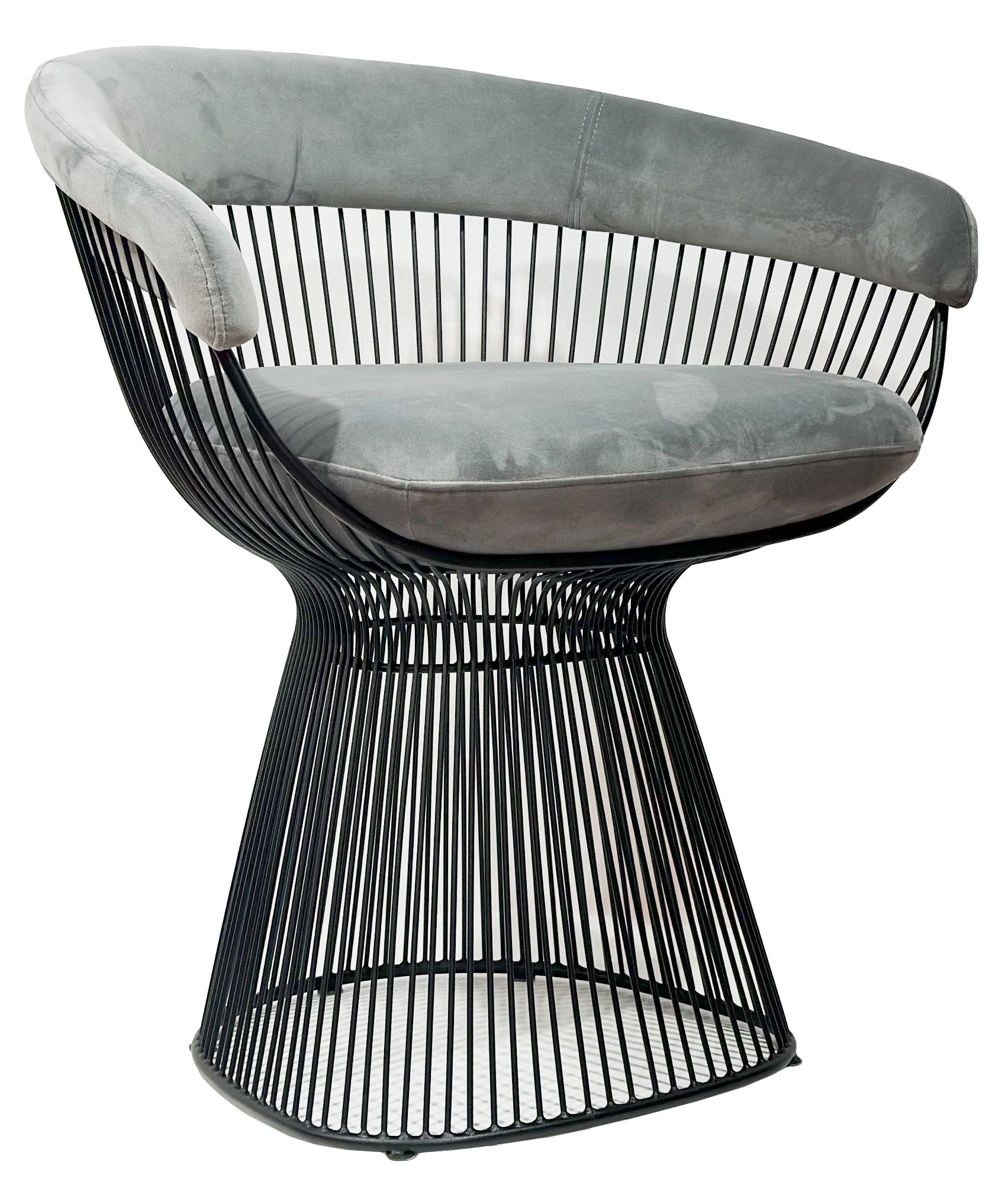 Krzesło designerskie Albert to elegancki mebel, który łączy styl i wygodę. Dzięki aksamitnej tapicerce i lakierowanej na czarno stalowej podstawie dodaje odrobiny luksusu każdej przestrzeni.