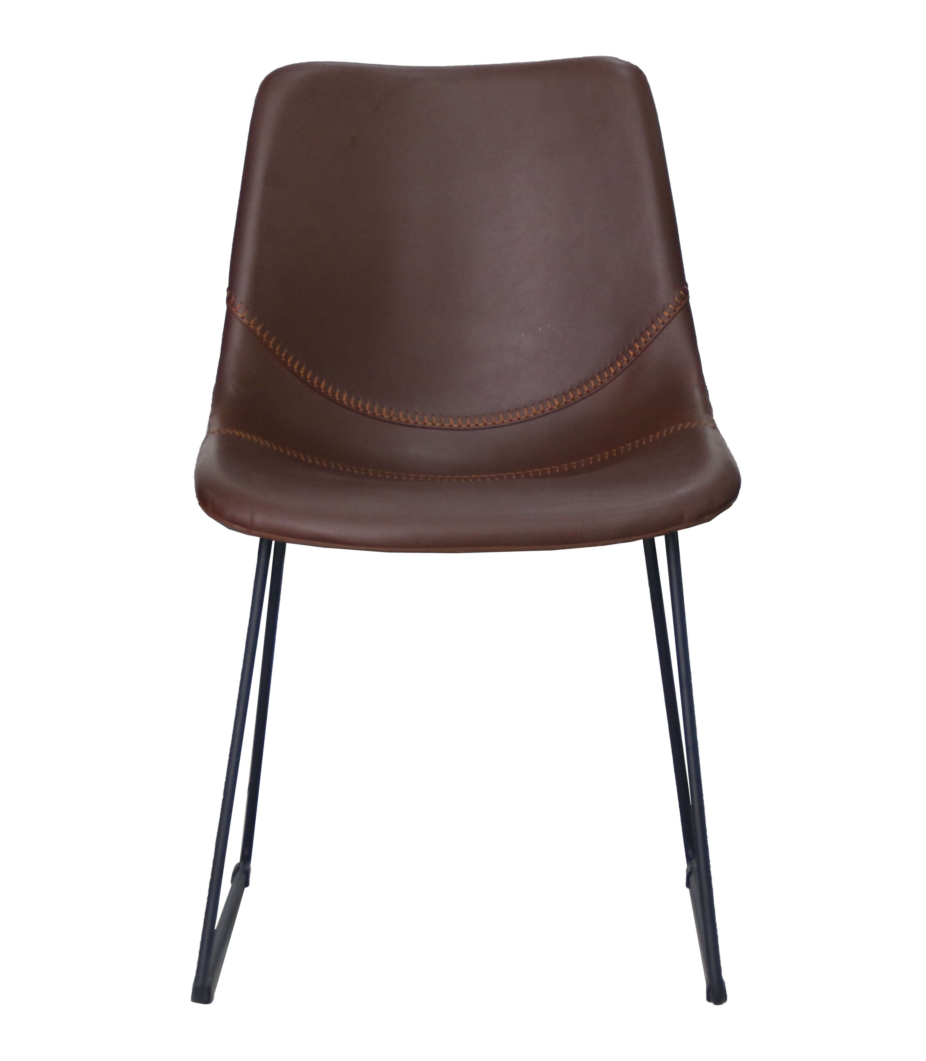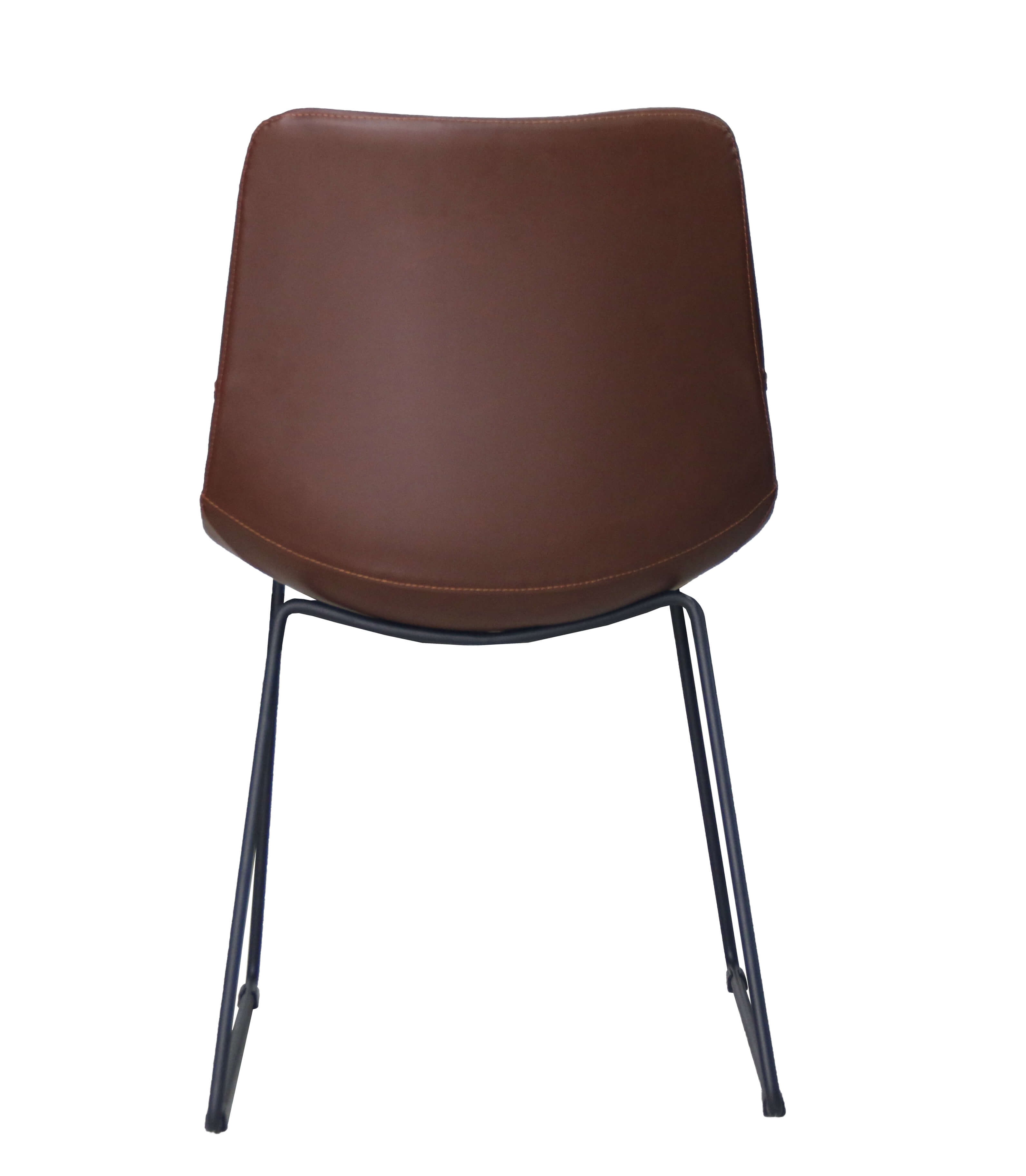 Tapicerowany imitacją skóry, z siedziskiem ze sklejki i stalowymi nogami, jest uniwersalnym krzesłem, które dopasowuje się do wszystkich stylów.