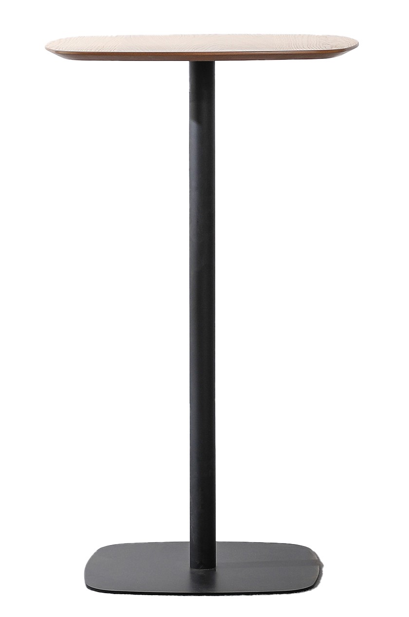 - Wysoki stół z blatem z naturalnego drewna dębowego.
