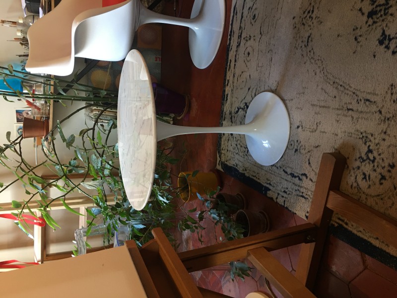 - Inspirerad av det berömda sidobordet Tulip Side av Eero Saarinen .