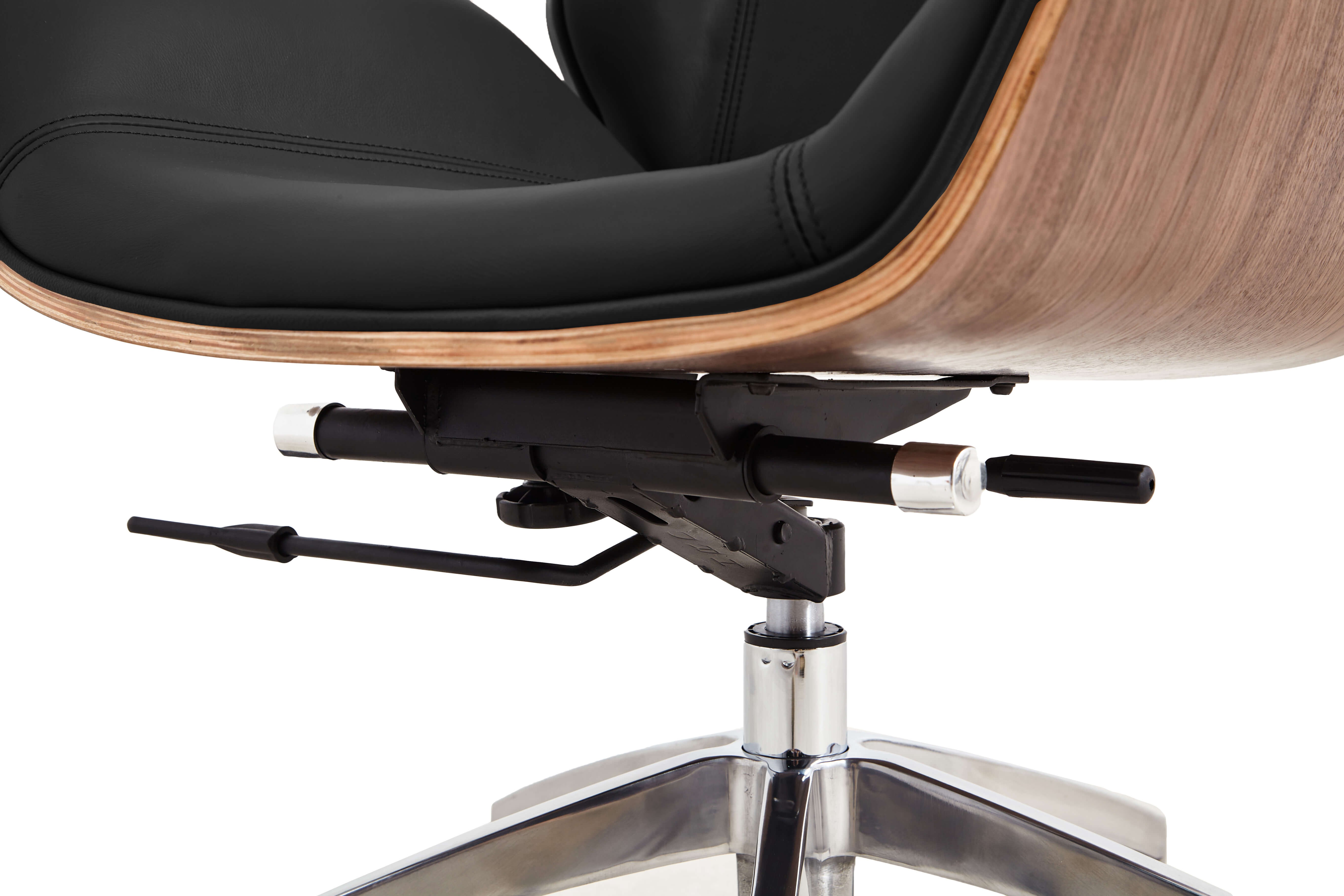 Sätet är helt klädd i äkta italienskt läder, en hudtyp med utsökt konsistens och en otrolig uthållighet, den bakre är valnötböjt trä, ett trä som kännetecknas av dess mjuk och tydlig åder, interiören är helt vadderad med skum med hög densitet och basen är aluminiumlegering.